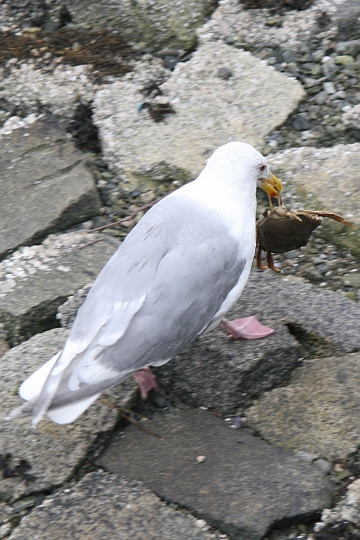 A seagull catching and eating a crab.