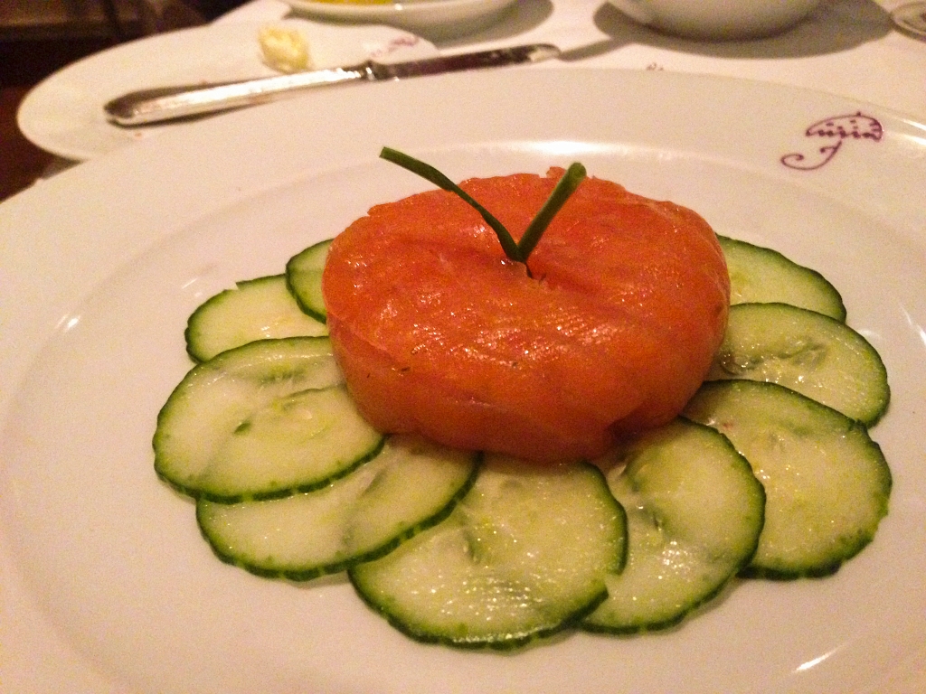 Pannequet de Saumon en Tartare Salmon Tartare wrapped in Salmon Gravlax with Cucumber Rosace | Rome118.jpg |